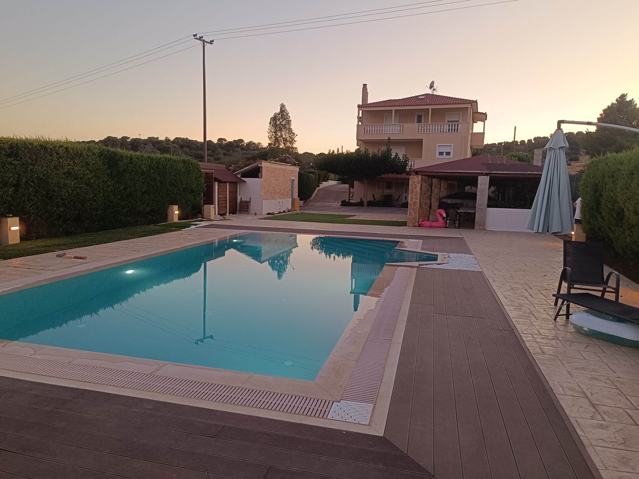 Ο εξωτερικός χώρος προσαρμόζεται ιδανικά και για events ή bachelor parties. Με φόντο το barbeque και την εντυπωσιακή πισίνα, το ευρύχωρο αίθριο δημιουργεί τη τέλεια ατμόσφαιρα για να μοιραστείτε γέλια και αναμνήσεις.